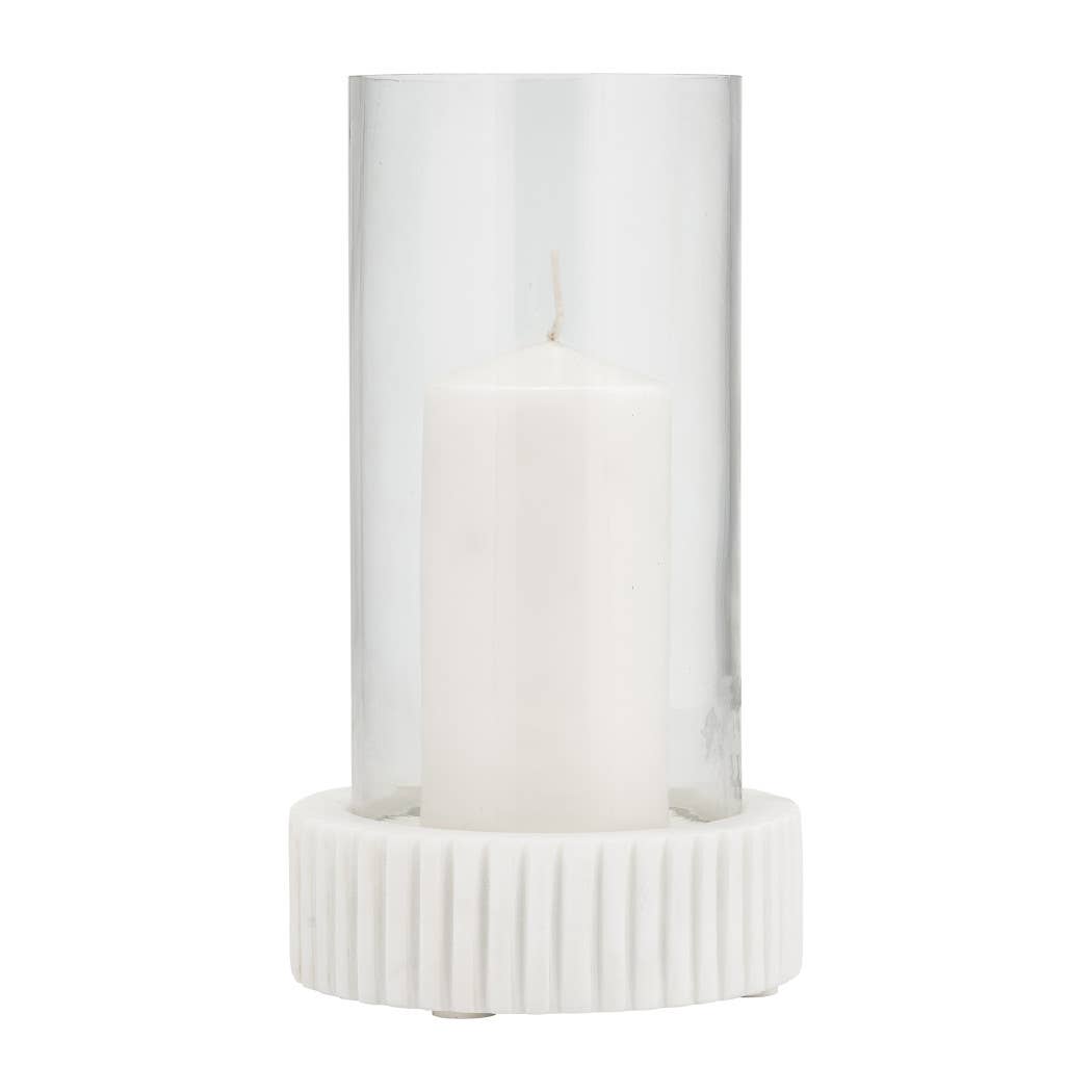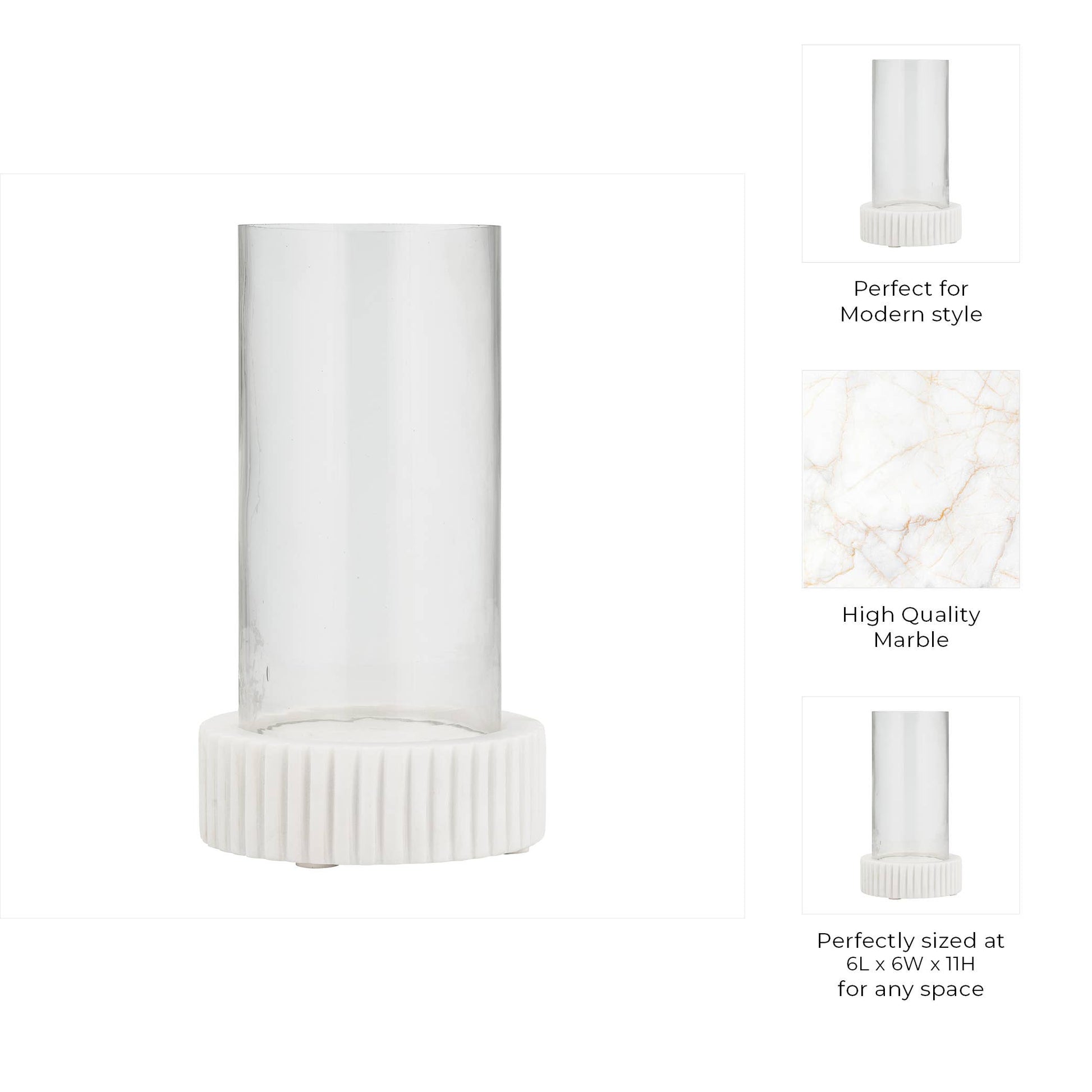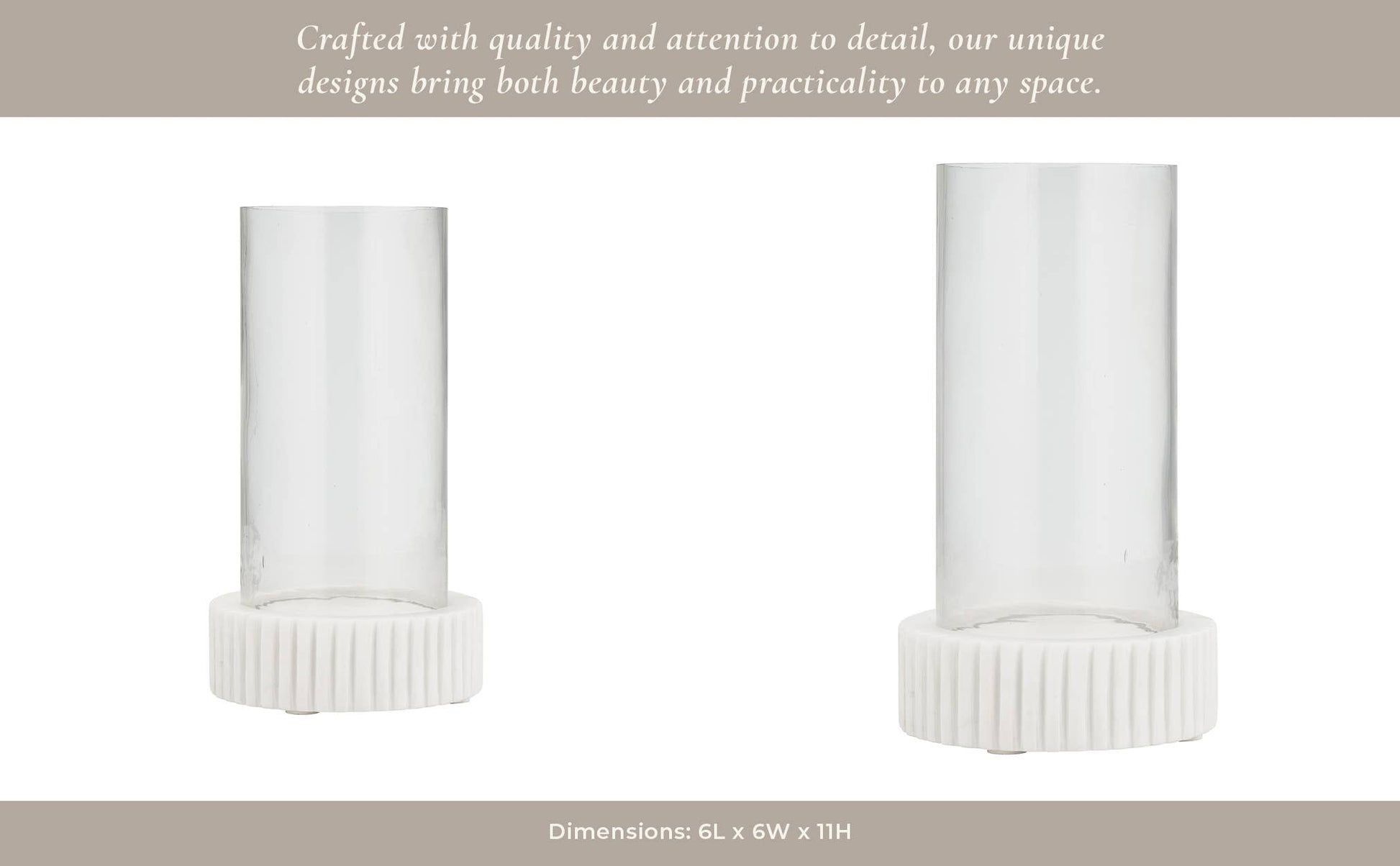 • ELEGANT & MODERN DESIGN - Enhance your decor with this sleek candle holder, featuring a fluted marble base and a clear glass hurricane. Its minimalist yet sophisticated style complements any home or event setting, making it a timeless centerpiece.