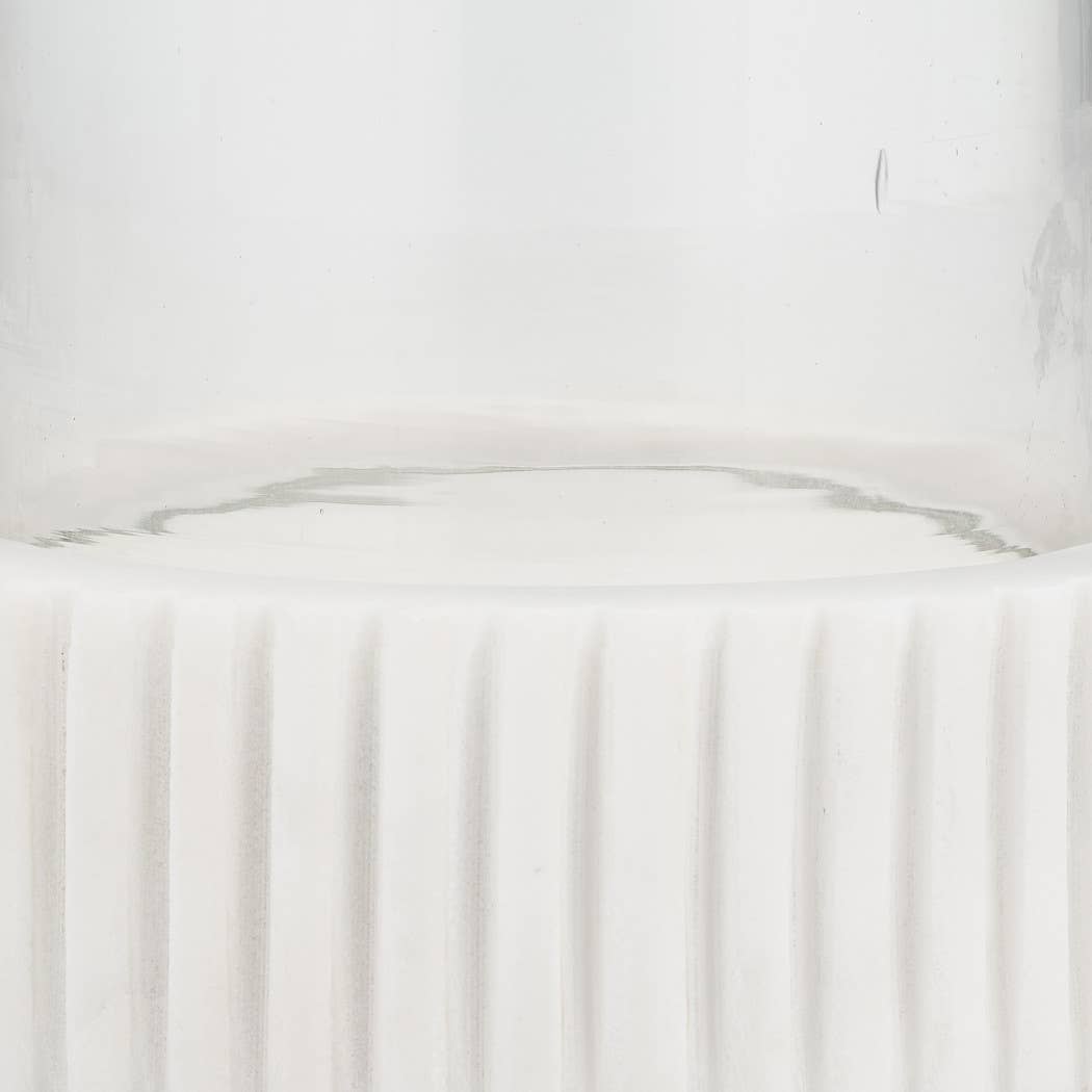 Marble Glass Ridged Hurricane Pillar Holder - White, 11 in.